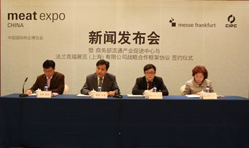 2015年4月16日下午,2015中國國際肉業(yè)博覽會新聞發(fā)布會暨商務(wù)部流通產(chǎn)業(yè)促進(jìn)中心與法蘭克福展覽(上海)有限公司戰(zhàn)略合作框架協(xié)議簽約儀式在北京國際飯店隆重舉行。本次,法蘭克福展覽將攜手商務(wù)部流通產(chǎn)業(yè)促進(jìn)中心,共同打造2015中國國際肉業(yè)博覽會(Meat Expo China 2015)。雙方將以此次展會為契機(jī),嚴(yán)格政府監(jiān)管政策,從食品安全的高度關(guān)注日益增長的肉類加工需求,開創(chuàng)中國肉類行業(yè)的巨大商機(jī)。