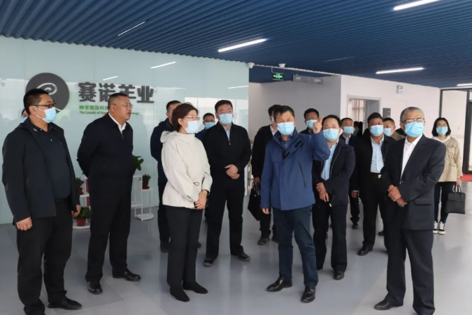 2022年4月20日,內蒙古科技廳廳長孫俊青、副廳長于濰、烏蘭察布市副市長李建文、烏蘭察布市科技局局長王清、調研員蘭云峰等一行領導,在四子王旗旗委書記尉代青、旗長蘇力德的陪同下到四子王旗內蒙古賽諾種羊科技有限公司進行科技工作調研。