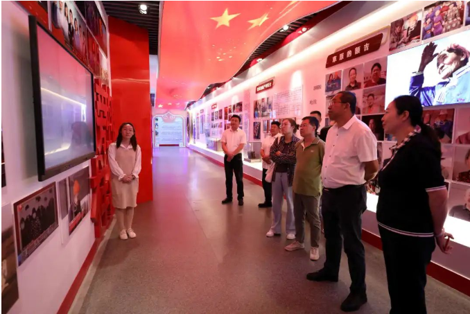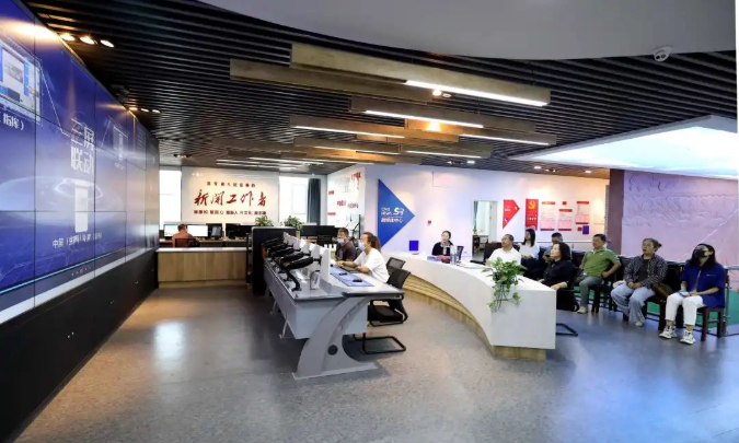 于長(zhǎng)洪一行首先參觀了習(xí)近平新時(shí)代中國(guó)特色社會(huì)主義思想實(shí)踐基地,觀看了都貴瑪老人的照片資料等,加深了對(duì)“人民楷?!倍假F瑪先進(jìn)事跡的了解,深切體會(huì)到老人那種超越地域界線無(wú)私奉獻(xiàn)的民族大愛(ài)精神。隨后于長(zhǎng)洪一行又參觀了四子王旗融媒體中心的中央廚房、多功能演播室等,全面細(xì)致了解四子王旗融媒體中心的運(yùn)營(yíng)情況。