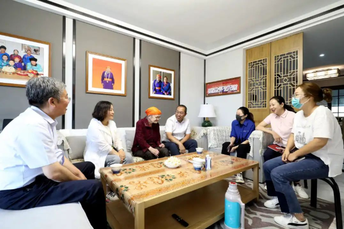 此次采訪調(diào)研期間,于長(zhǎng)洪一行還上門看望了“人民楷模”都貴瑪老人,他與老人并肩而坐、親切交談,關(guān)切詢問(wèn)老人的日常生活,并代表新華社內(nèi)蒙古分社對(duì)老額吉表示崇高的敬意,祝愿老人健康長(zhǎng)壽、生活幸福。