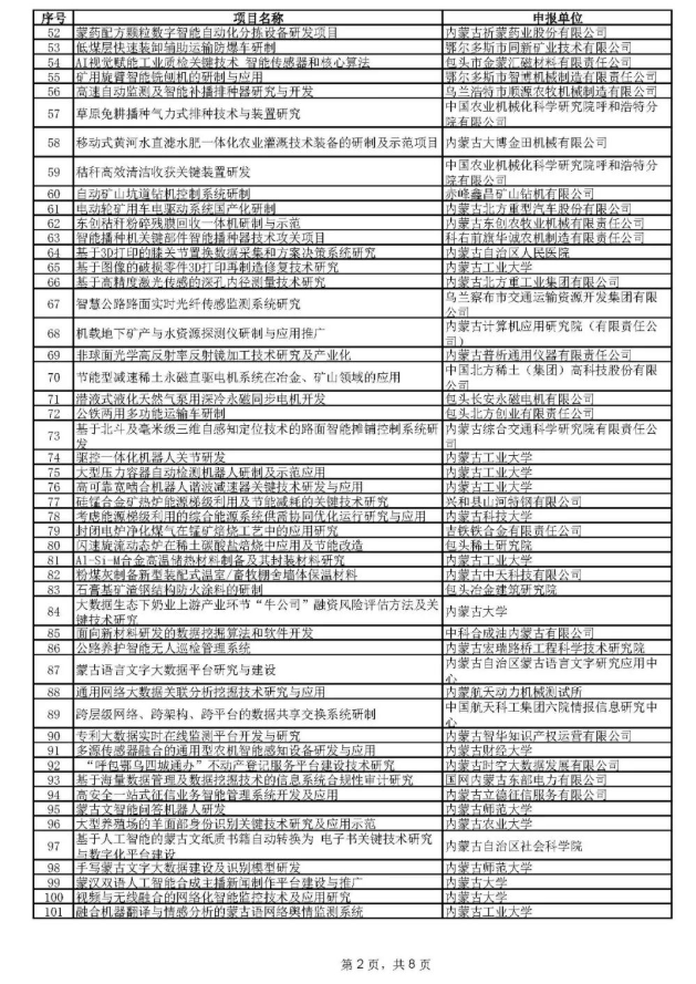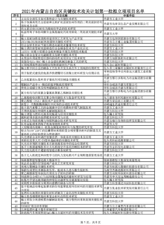附件:2021年內(nèi)蒙古自治區(qū)關鍵技術攻關計劃第一批擬立項項目名單