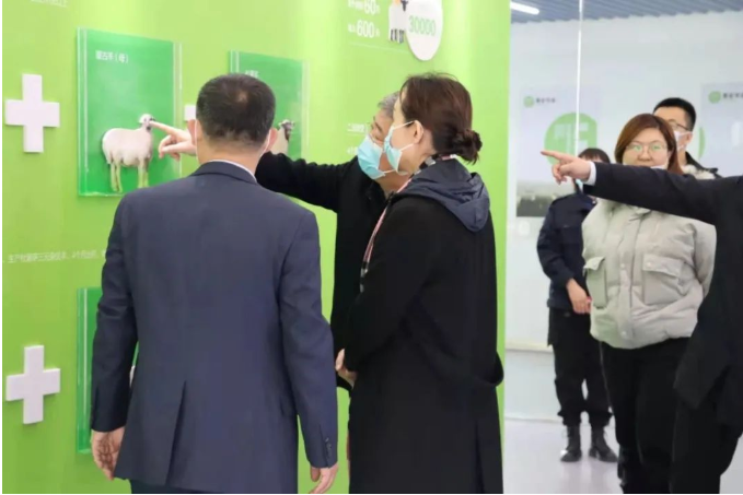 調(diào)研團(tuán)分別參觀了賽諾羊業(yè)企業(yè)展廳、育種展廳,由董事長李俊龍對(duì)“三步升級(jí)”的改良成果、育種研發(fā)體系、種羊的繁殖技術(shù)進(jìn)行了詳細(xì)的講解,作為農(nóng)業(yè)部首批認(rèn)定的國家肉羊核心育種場、國家級(jí)良種肉羊繁育養(yǎng)殖標(biāo)準(zhǔn)化示范區(qū)、自治區(qū)肉羊種業(yè)工程技術(shù)研究中心、自治區(qū)農(nóng)牧業(yè)產(chǎn)業(yè)化重點(diǎn)龍頭企業(yè)和自治區(qū)扶貧龍頭企業(yè),賽諾始終堅(jiān)持以國家肉羊核心育種場為依托,以肉羊育種、繁殖技術(shù)為核心,通過“企業(yè)+星級(jí)服務(wù)站+農(nóng)牧民合作戶”的合作模式,帶動(dòng)農(nóng)牧民增收致富。