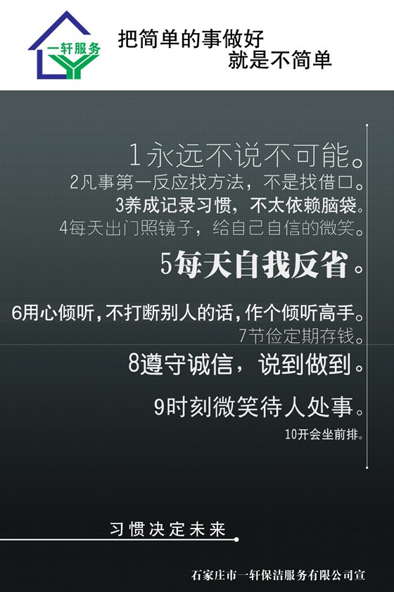一軒崇尚:真誠(chéng)、坦率、奉獻(xiàn)、高效的敬業(yè)精神