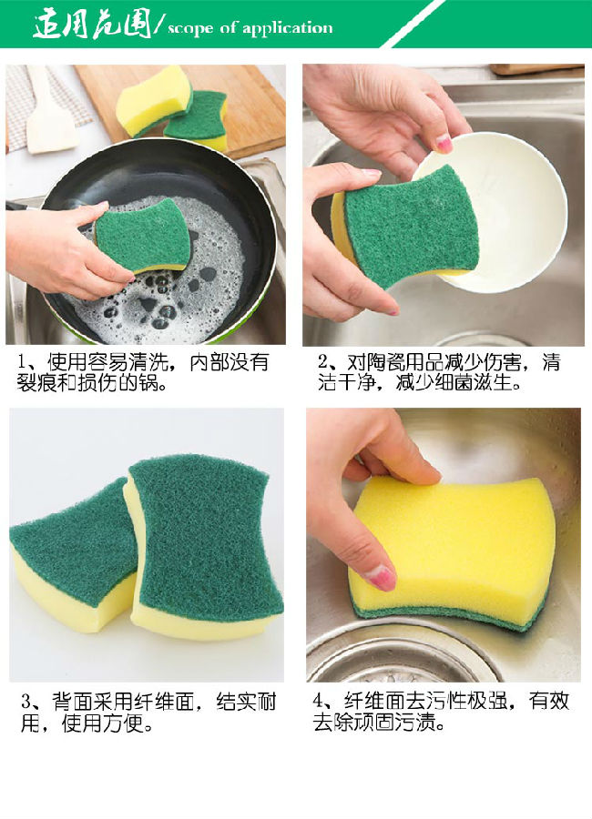 腰型獨特設(shè)計,洗碗海綿百潔布二合一,兩面不同質(zhì)地,各種餐具都好洗,起泡豐富,輕松去除污漬,不傷手且易清洗,厚實耐用。優(yōu)質(zhì)高回彈性吸水海綿。您的廚房清潔好幫手哦!