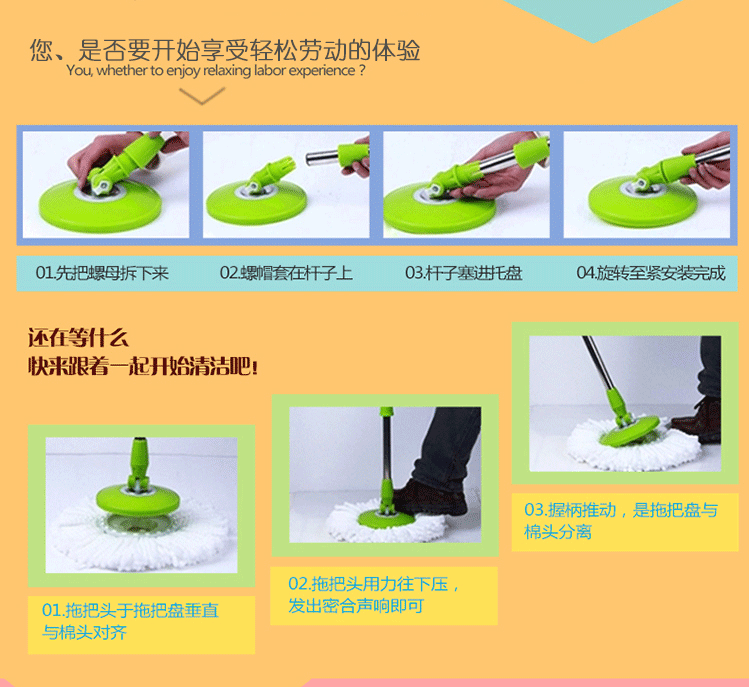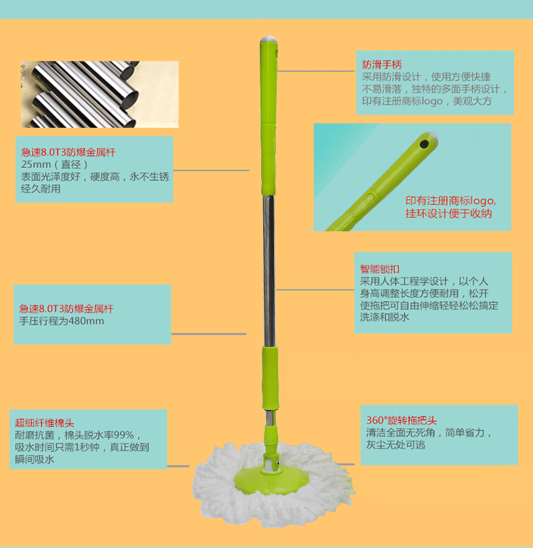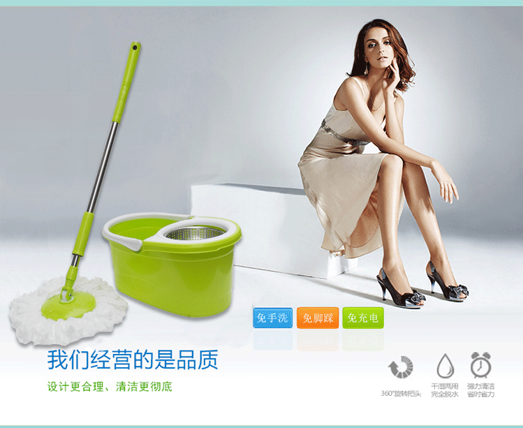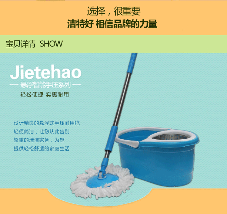 潔特好旋轉(zhuǎn)拖把配送2個(gè)拖頭 伸縮拖桿 加厚拖桶