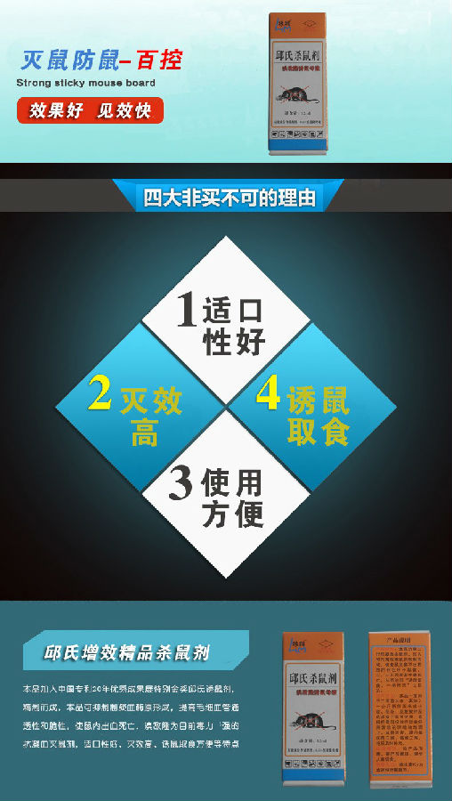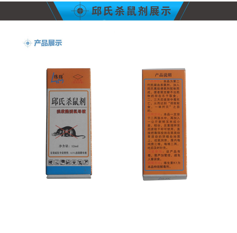本產(chǎn)品 屬于慢性鼠藥取食2、3天才中毒身亡。